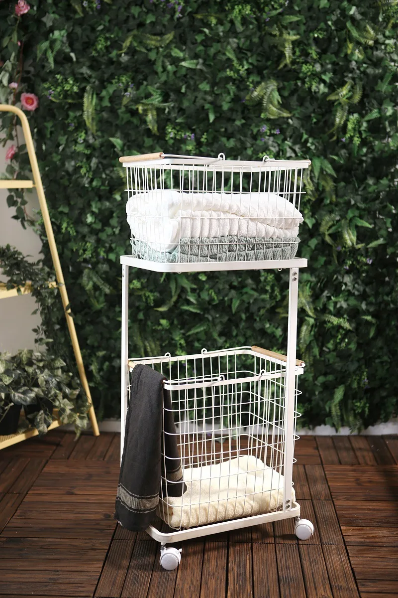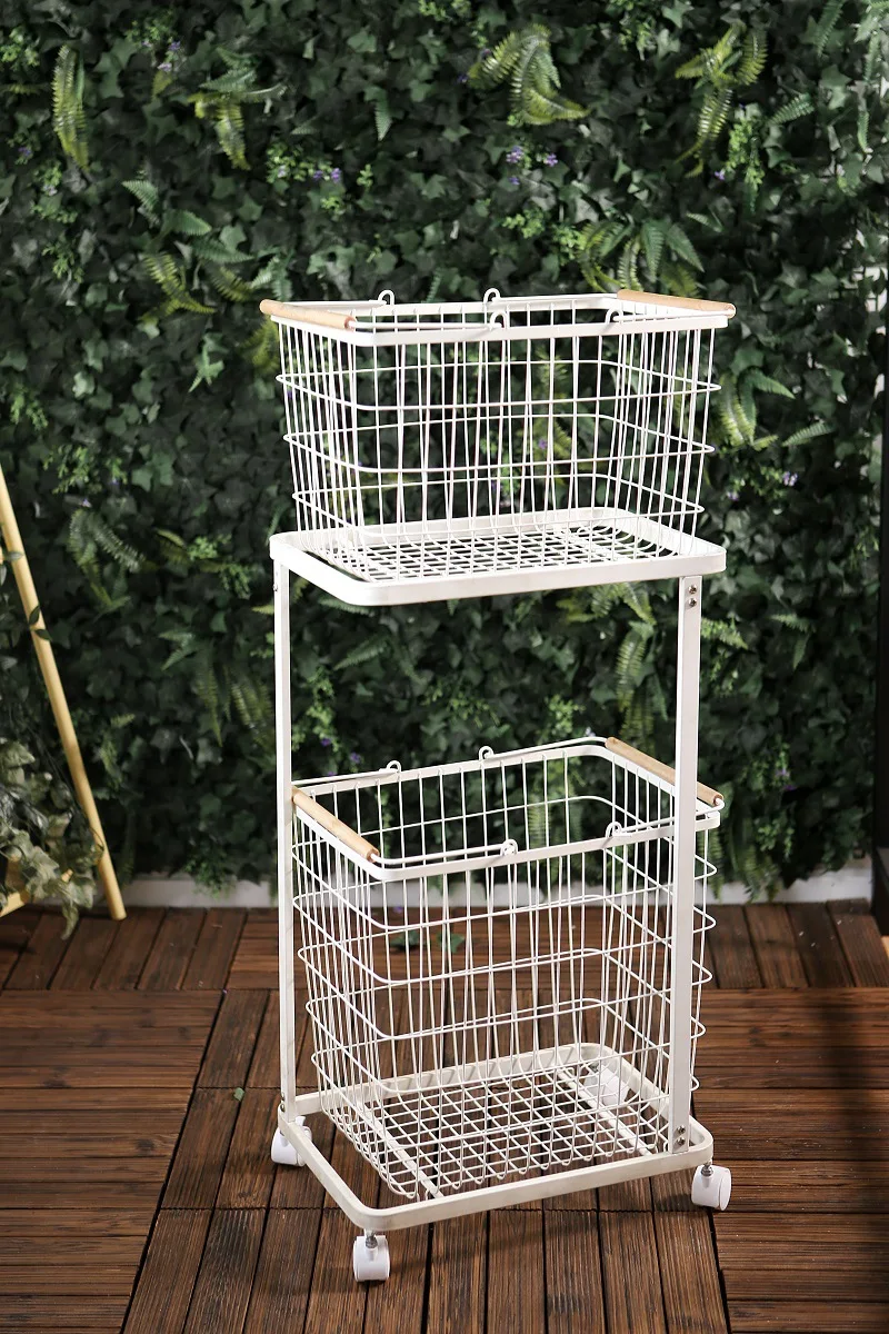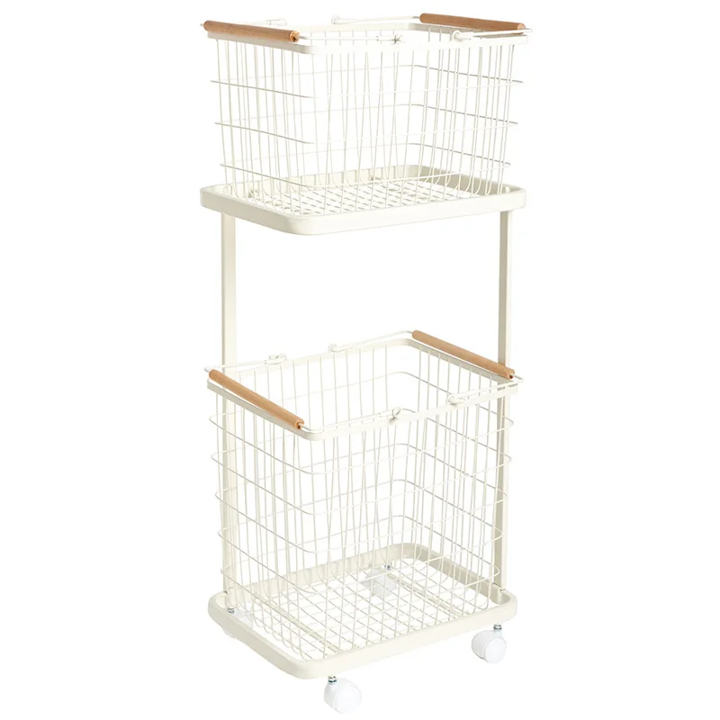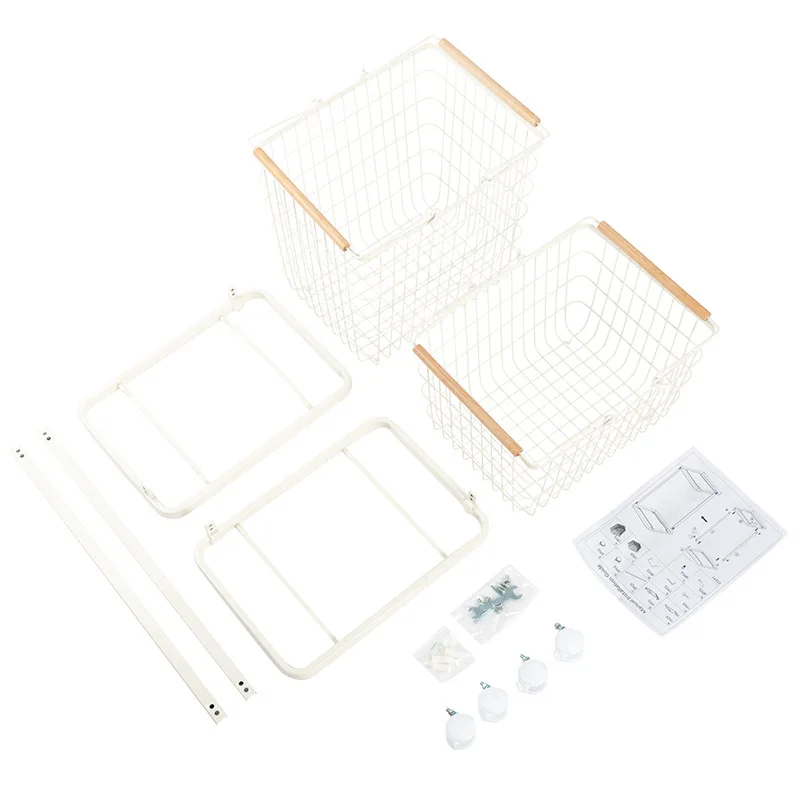 You are here: Home » Products » Storage Basket » 2 Tier Stackable Metal Wire Basket Cart with Rolling Wheels, Utility Rack for Kitchen, Pantry, Garage With 2 Free Baskets