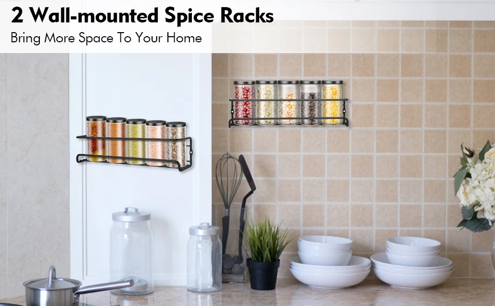 2pcs Wall Mounted Spice Rack Hanging Spice Organizers Kitchen Condiments Storage for Space Saving