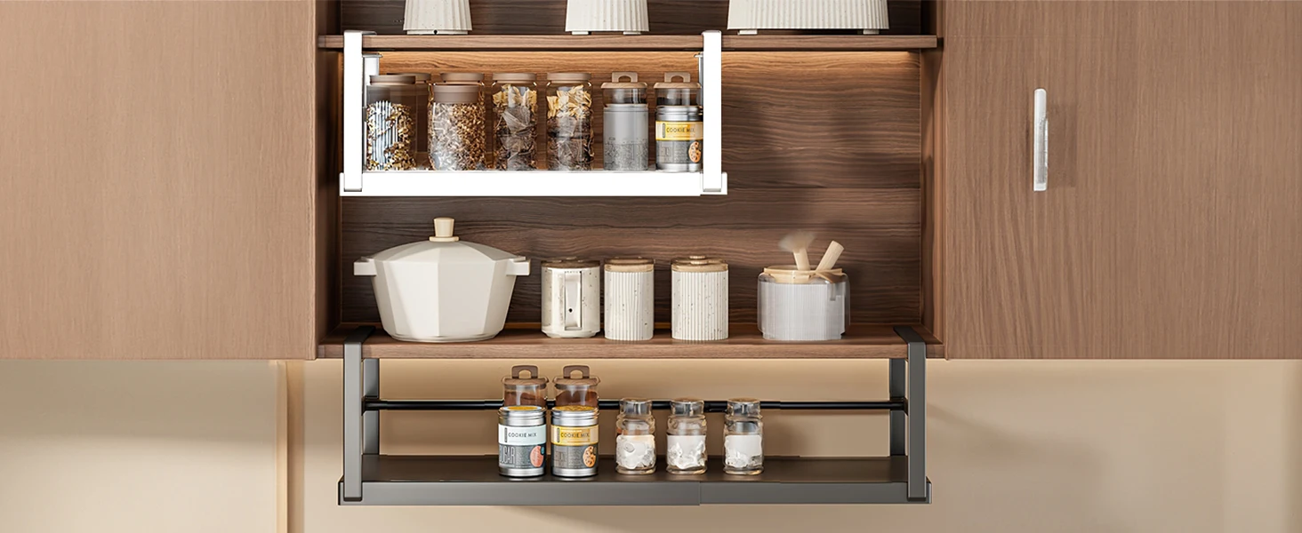 You are here: Home » Products » Kitchen Storage » Adjustable Width Metal Cabinet Storage Racks Heavy Duty Slide Organizer Hanging Shelf Spice Organizer Spice Storage Basket