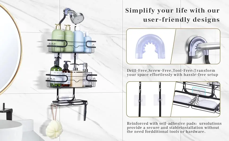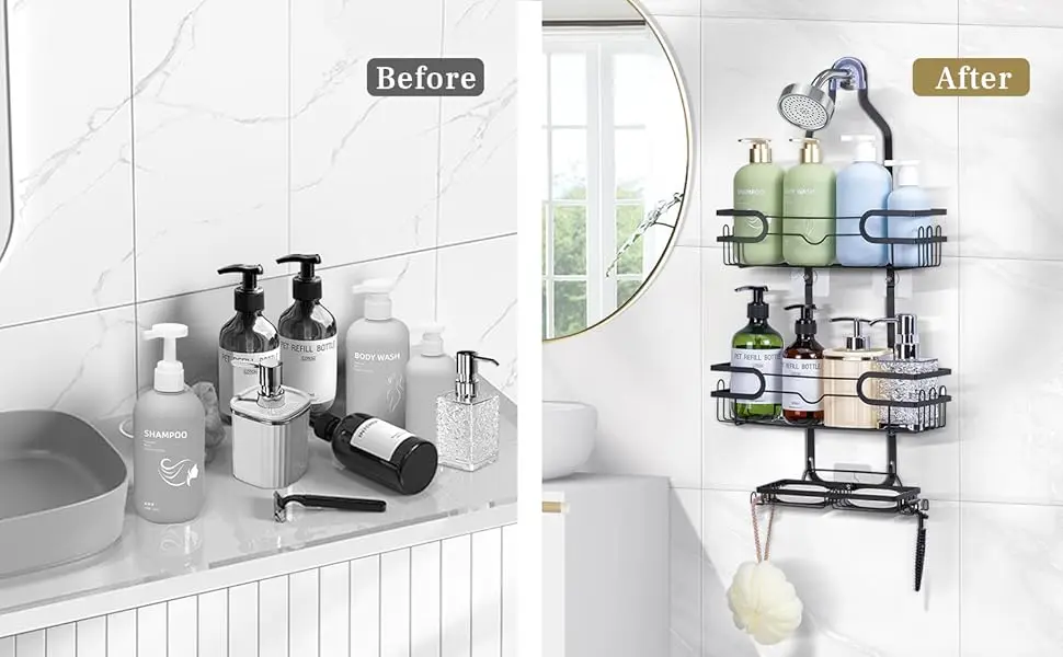 Bathroom Hanging Shower Organizer Large Hanging Shower Caddy with Hooks for Razor and Sponge Rustproof