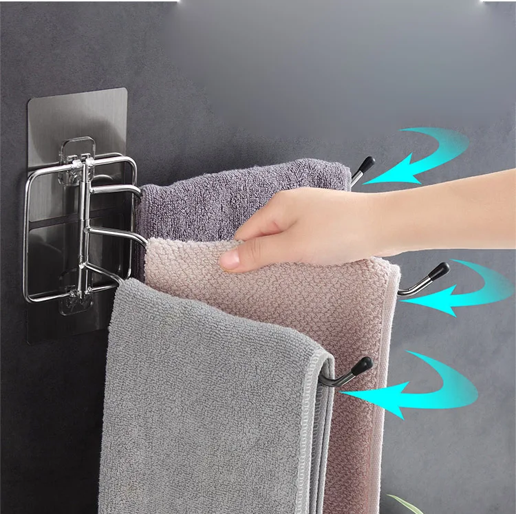 Bathroom Towel Bath Towel Rack 180 Degree Rotatable Towel Rack No Punch Stainless Steel Kitchen Rag Rack