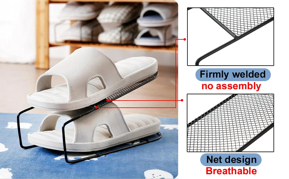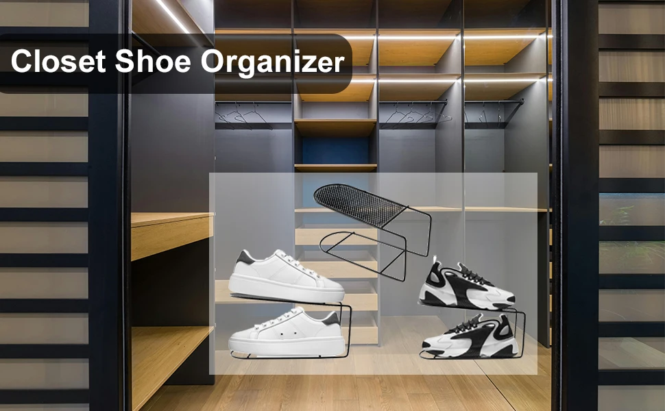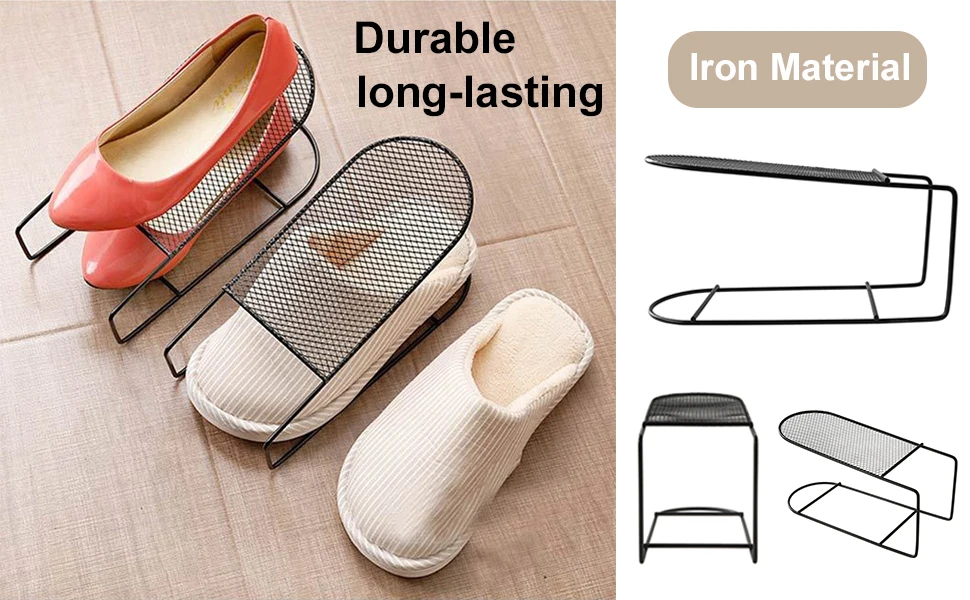 Black Iron Shoe Rack Stand Metal Shoe Slots Organizer & Storage Closet for Wardrobe Shoe Stacker Holder