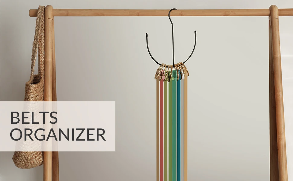 Black Metal Belt Rack Closet Accessories Organizers, Closet Organizer Hook Rack for Belt
