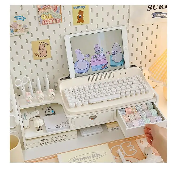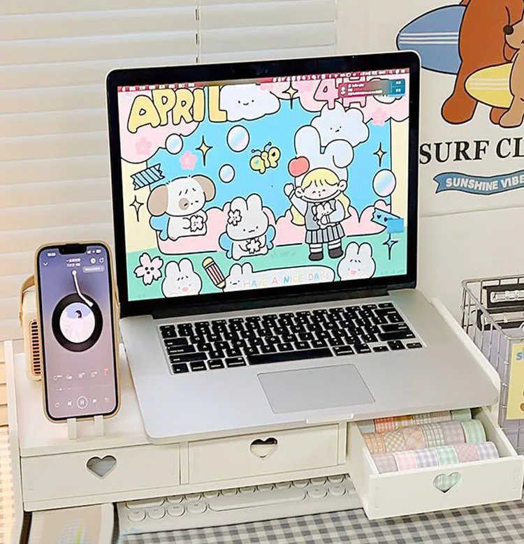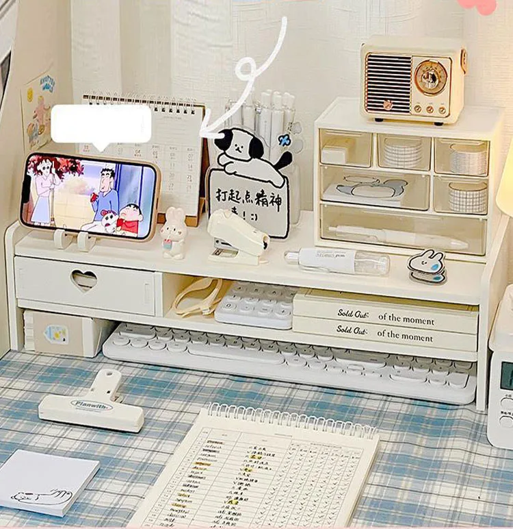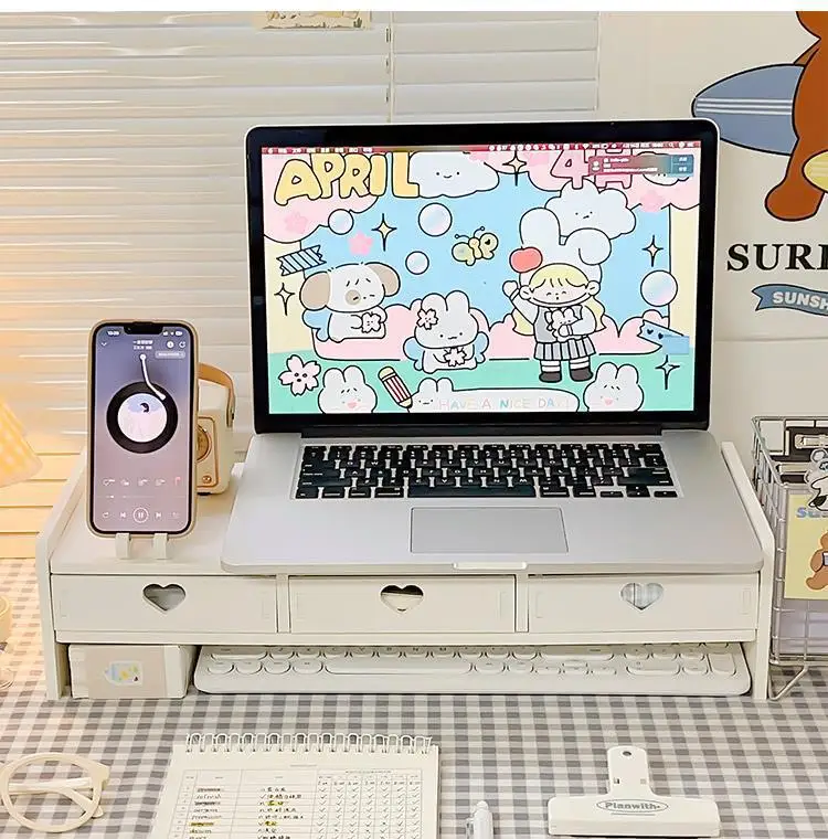 Computer Booster Stand Monitor Support Stand PVC Storage Holders & Racks Customized Logo Multifunction White Plastic Storage