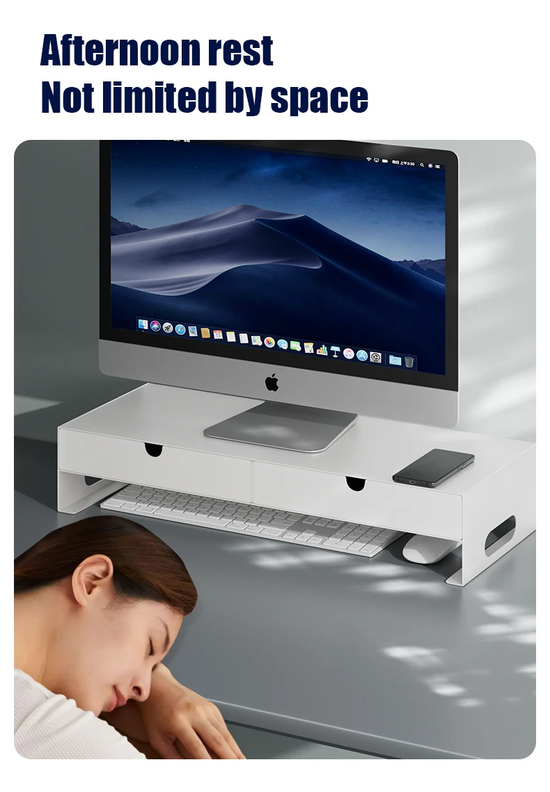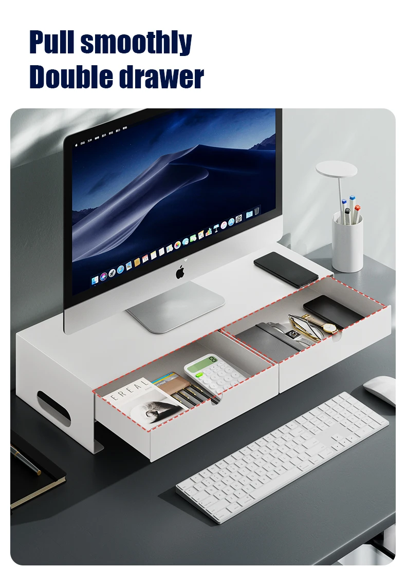 You are here: Home » Products » Height-increasing Bracket » Double-Tier Metal Computer Monitor Booster Stand Office Desktop Storage Stand with Standing Type Installation for Sundries