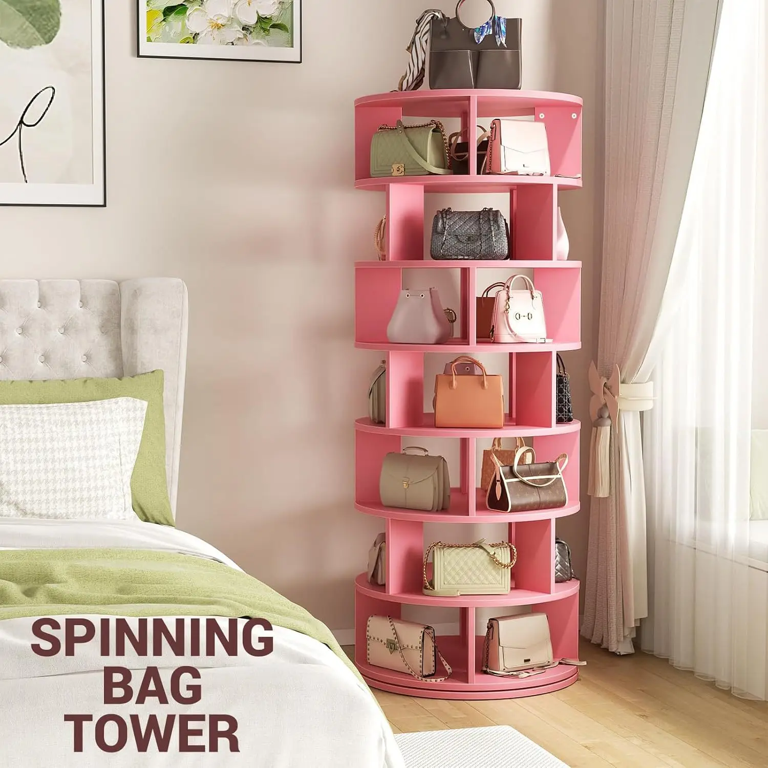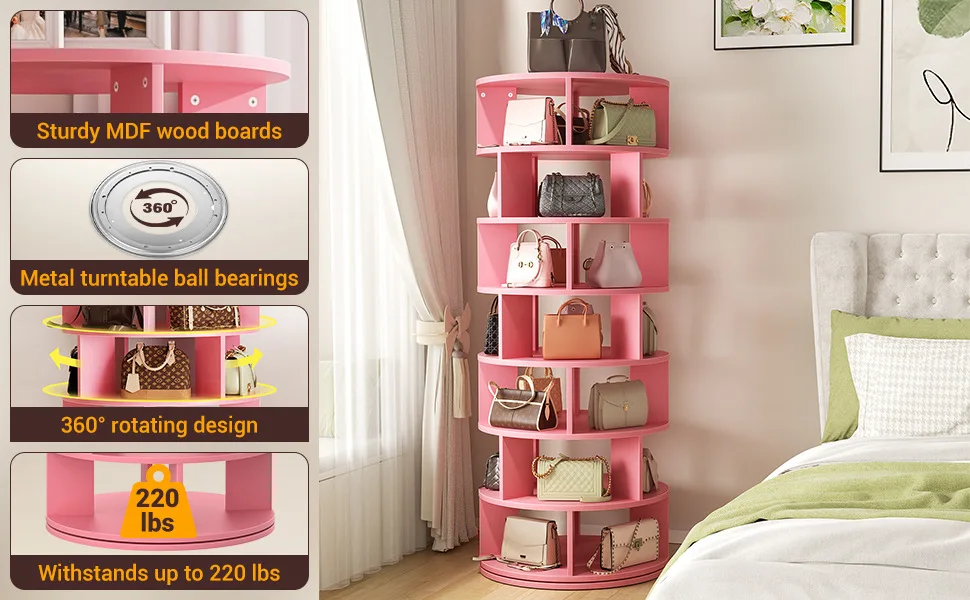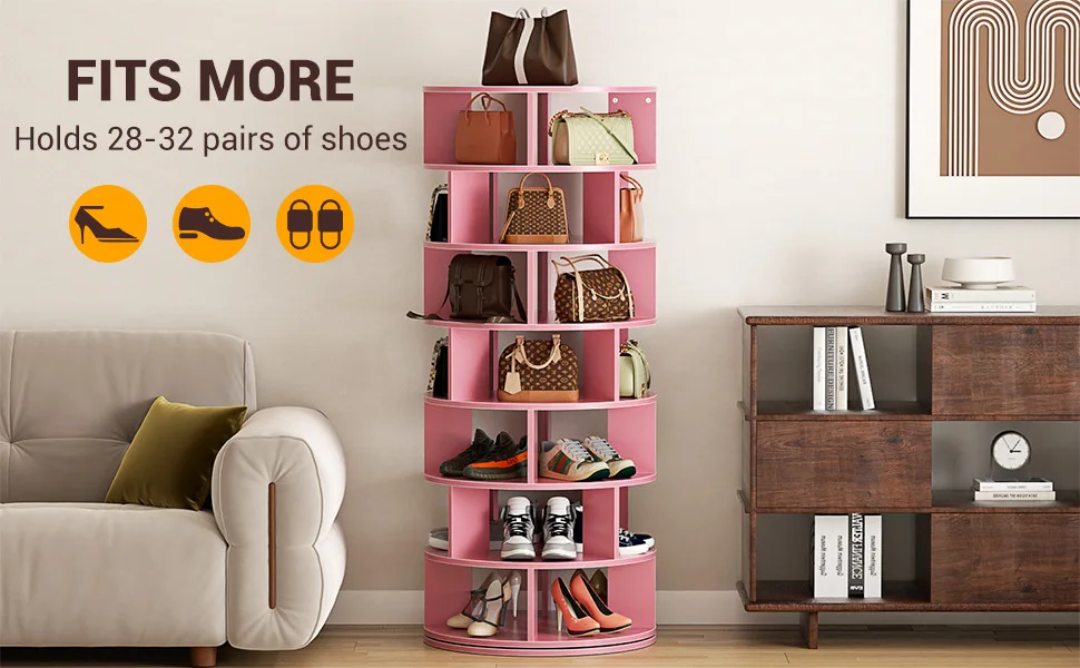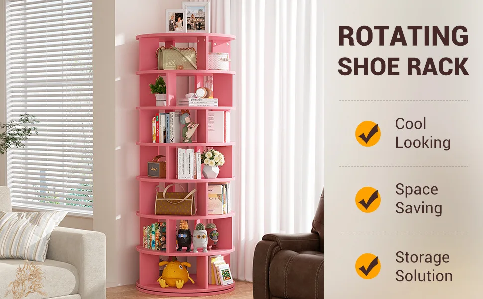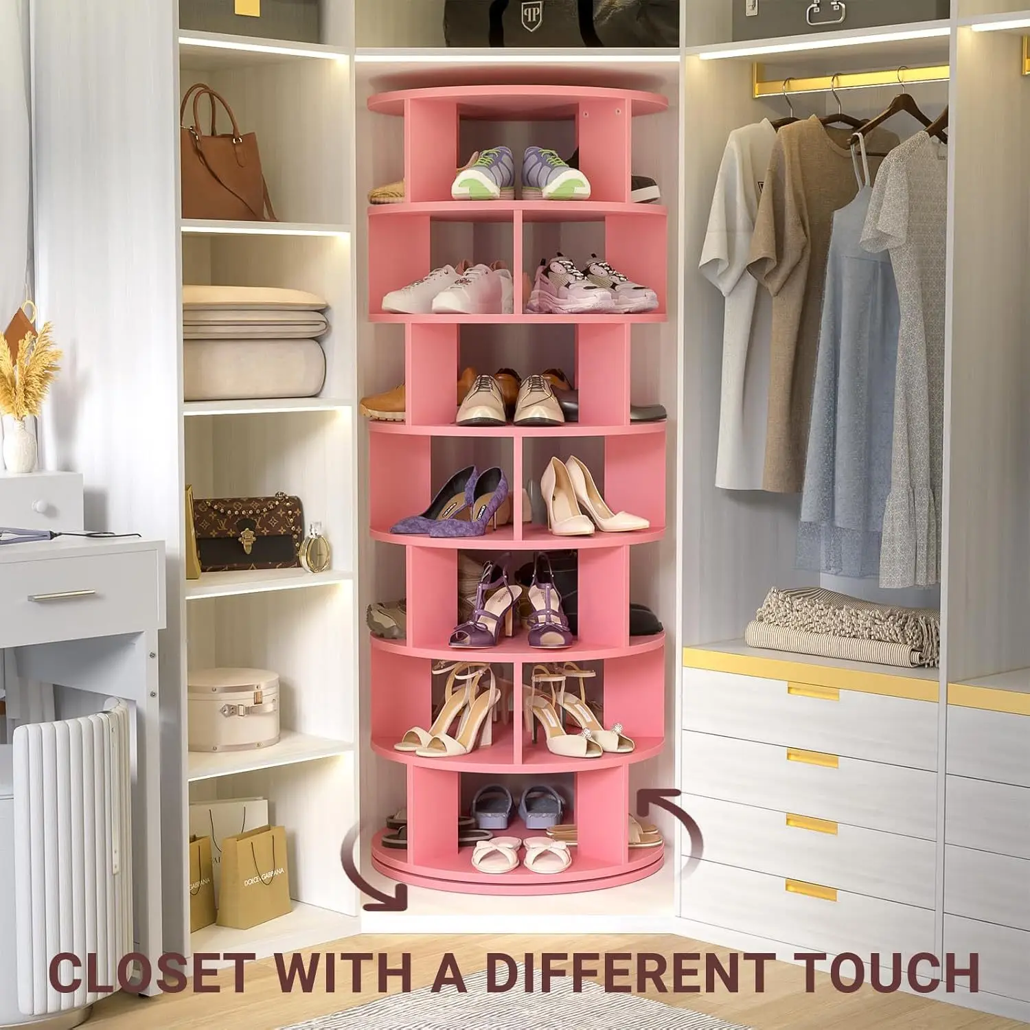 Hot Selling 7-Tier Rotating Shoe Rack Customized Logo Glossy 360° Revolving Shoe Organizer Free Standing Plastic Rack Tools