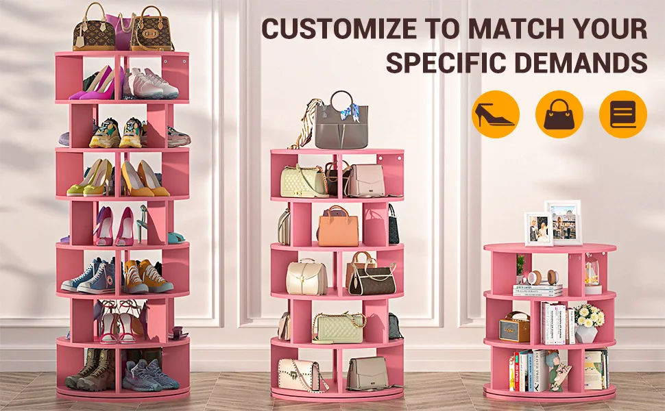 You are here: Home » Products » Shoe Rack » Hot Selling 7-Tier Rotating Shoe Rack Customized Logo Glossy 360° Revolving Shoe Organizer Free Standing Plastic Rack Tools