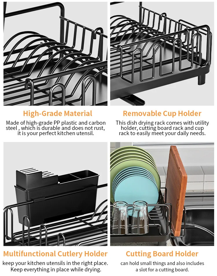 You are here: Home » Products » Kitchen Storage » Hot Selling Multi-functional Dish Rack Black Kitchen Accessories Storage Holders & Racks Multifunction Kitchen Organizers Morden
