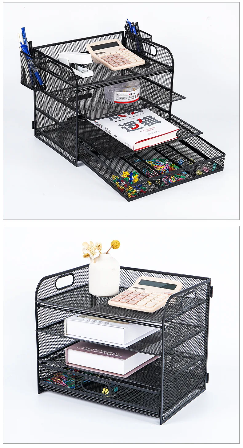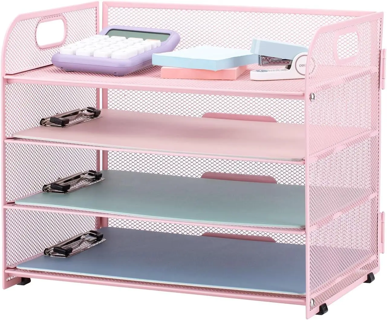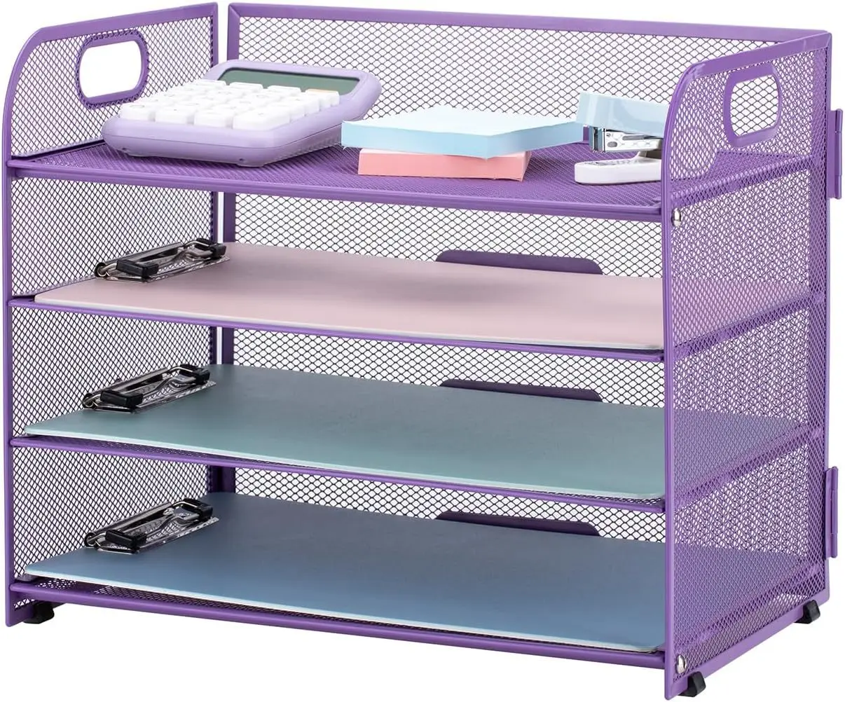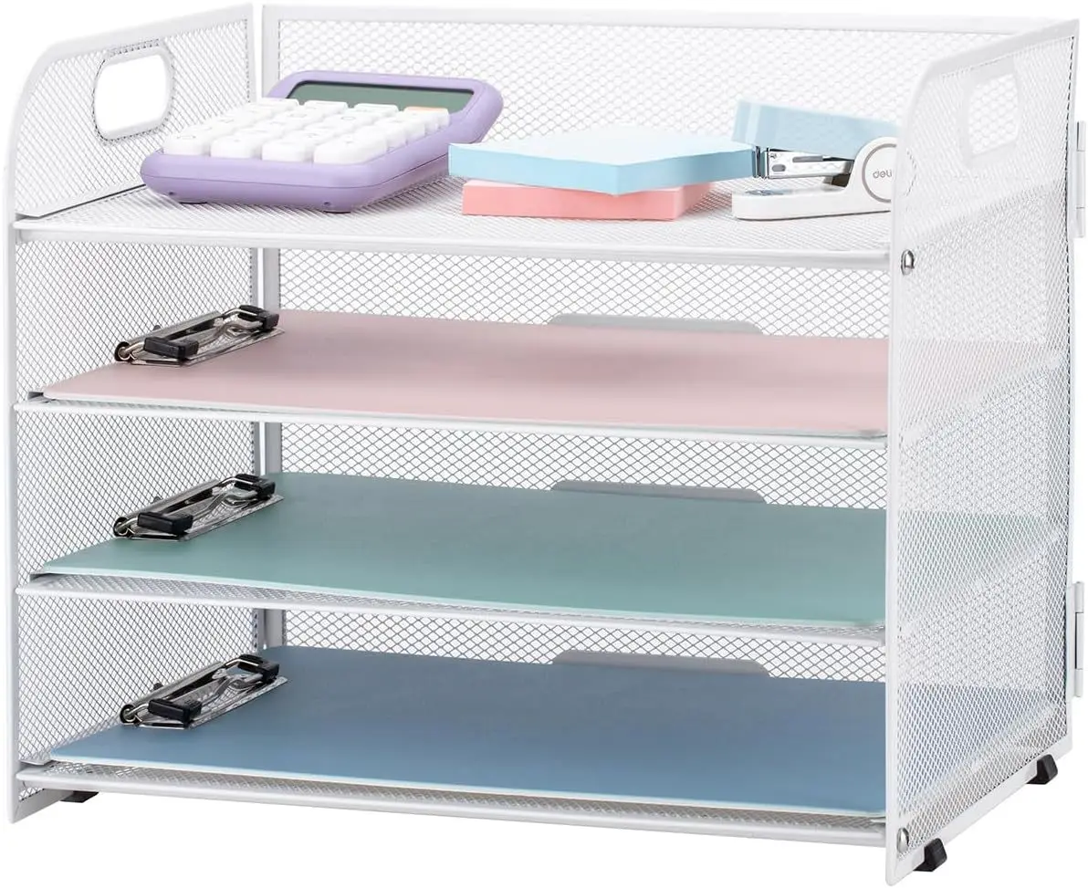 You are here: Home » Products » File Storage » Letter Tray Paper Organizer 4-Tier Desk Organizer File Organizer Paper Holder with Handle, Metal Desktop Document Shelf