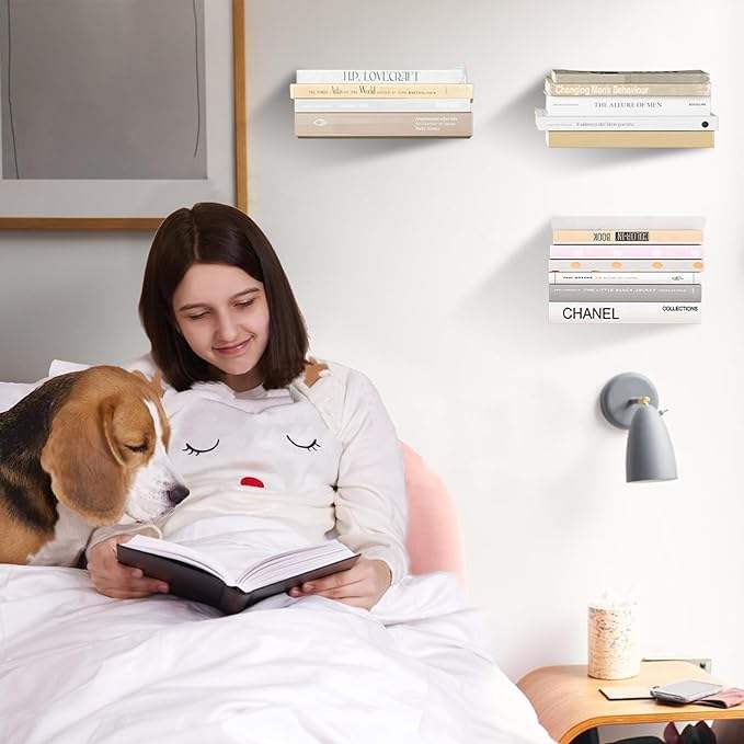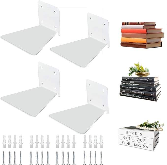 Metal Floating Bookshelf Modern White Wall Mount Shelves for Room Small Bookshelf with Minimalist Design
