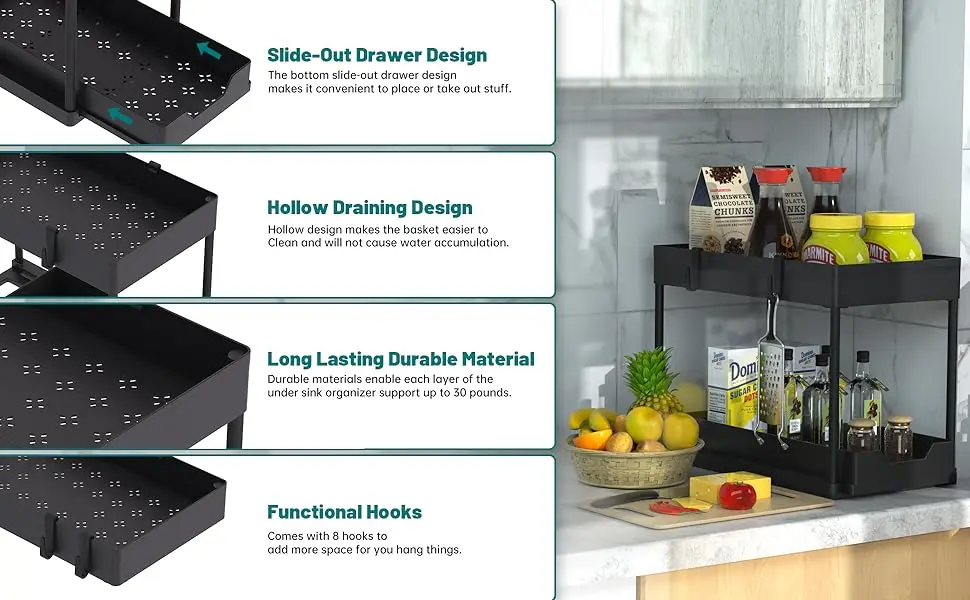 Multi-Purpose Under Sink Organizers and Storage for Bathroom Kitchen
