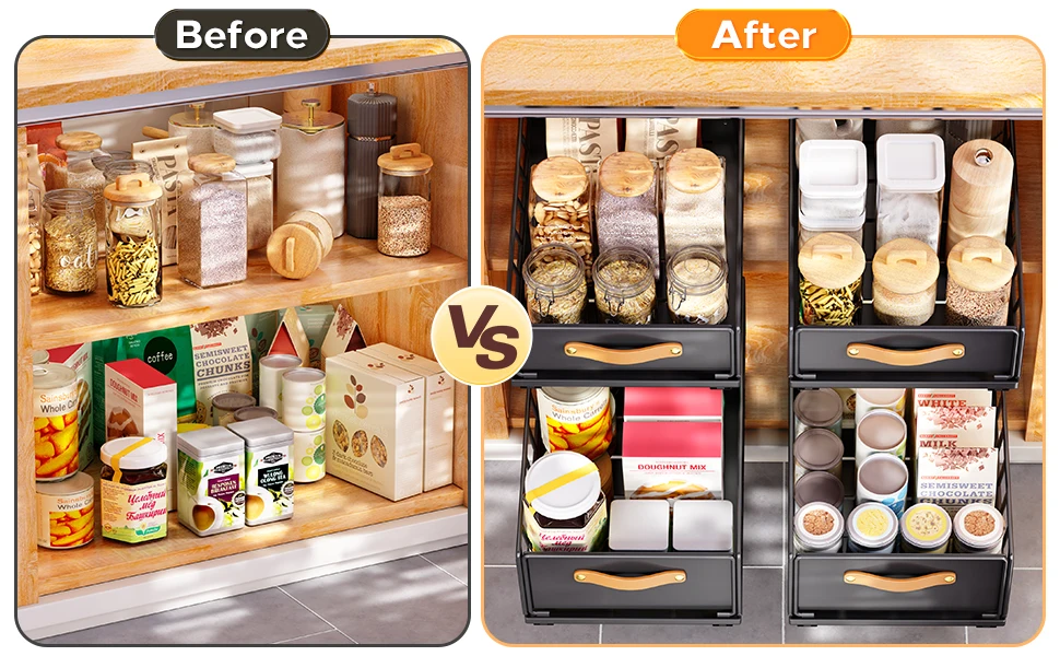 You are here: Home » Products » Kitchen Storage » Pull Out Cabinet Organizer Fixed Heavy Duty Slide Out Pantry Shelves Drawer Storage