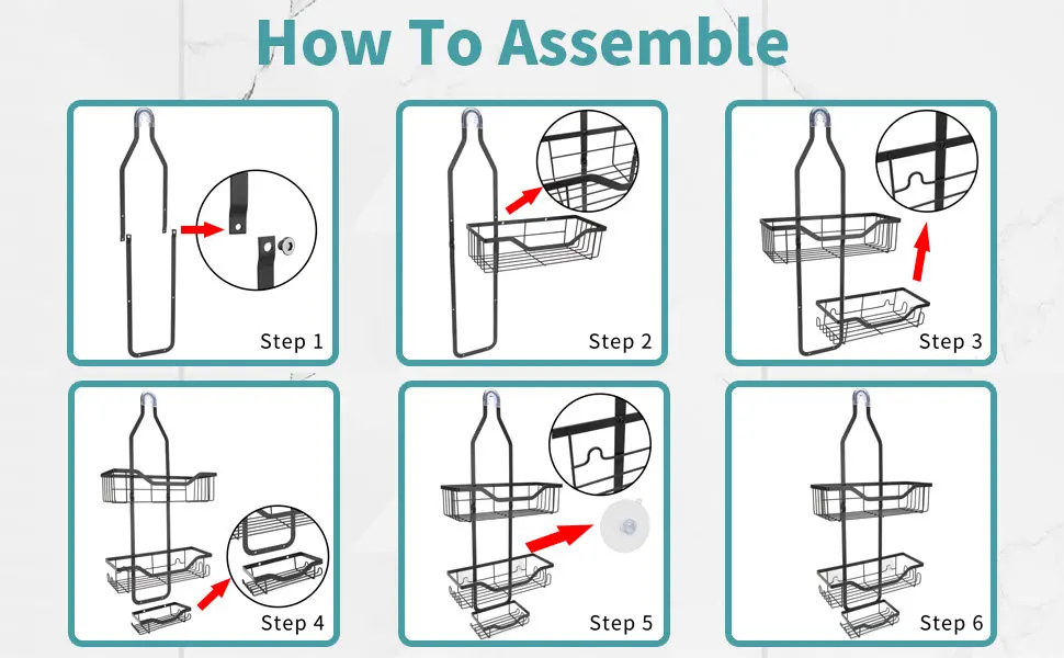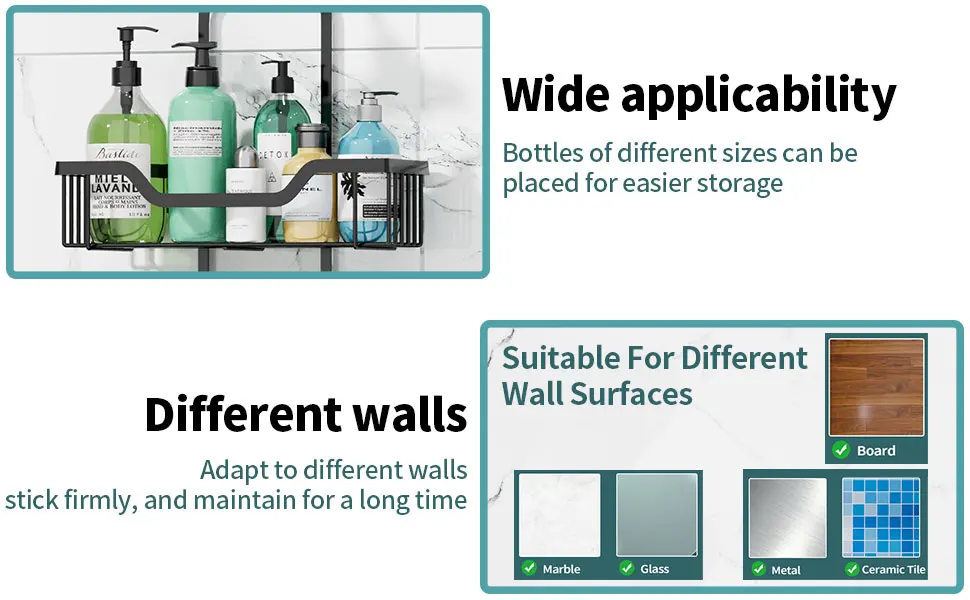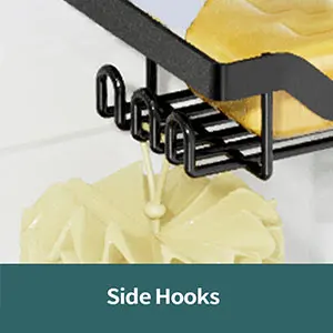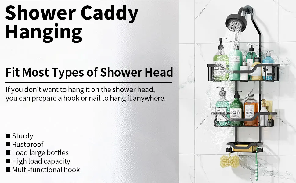 You are here: Home » Products » Bathroom Storage » Shower Caddy Hanging, Anti-Swing Shower Caddy Over Shower Head Hanging Bathroom Shelves with Hooks and Soap Holder
