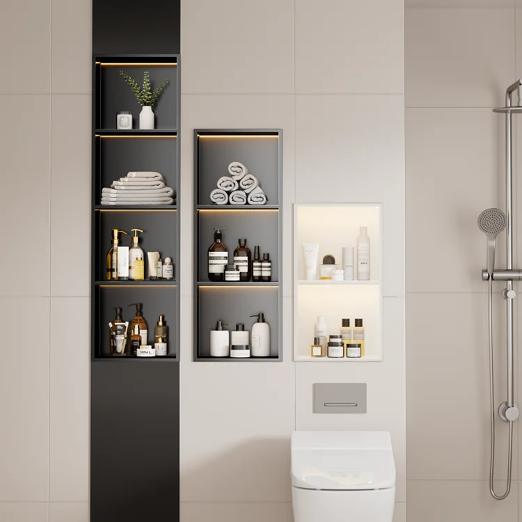 You are here: Home » Products » Niche Cabinet » Stainless Steel Niche Cabinet Living Room Bathroom Embedded Design Wall Metal Shelf
