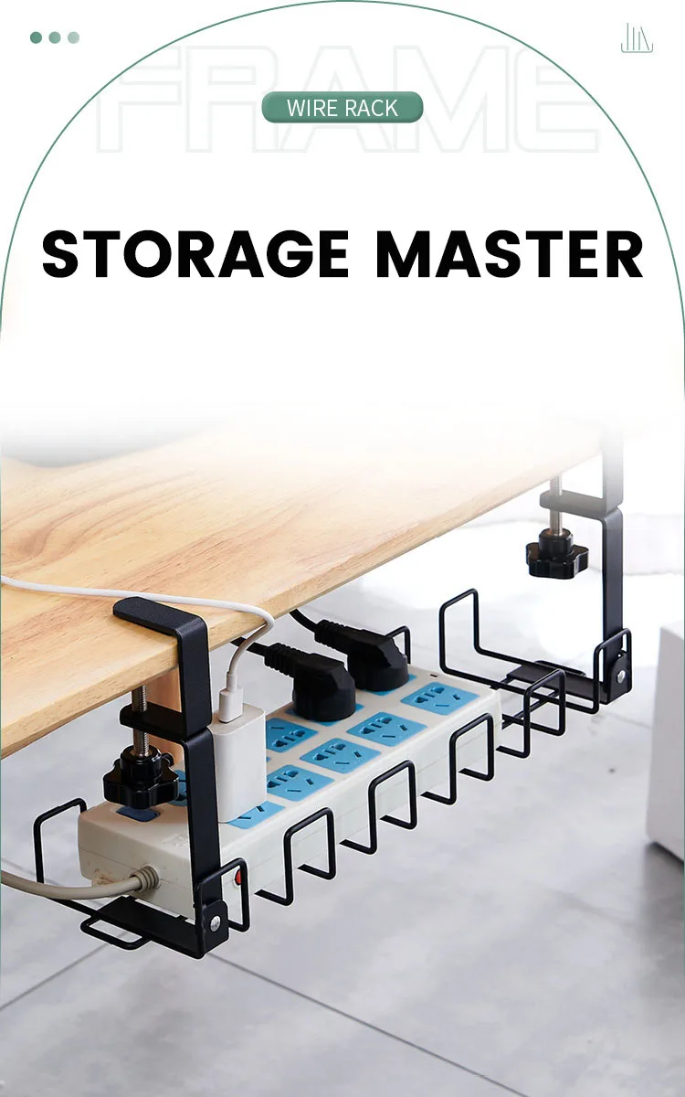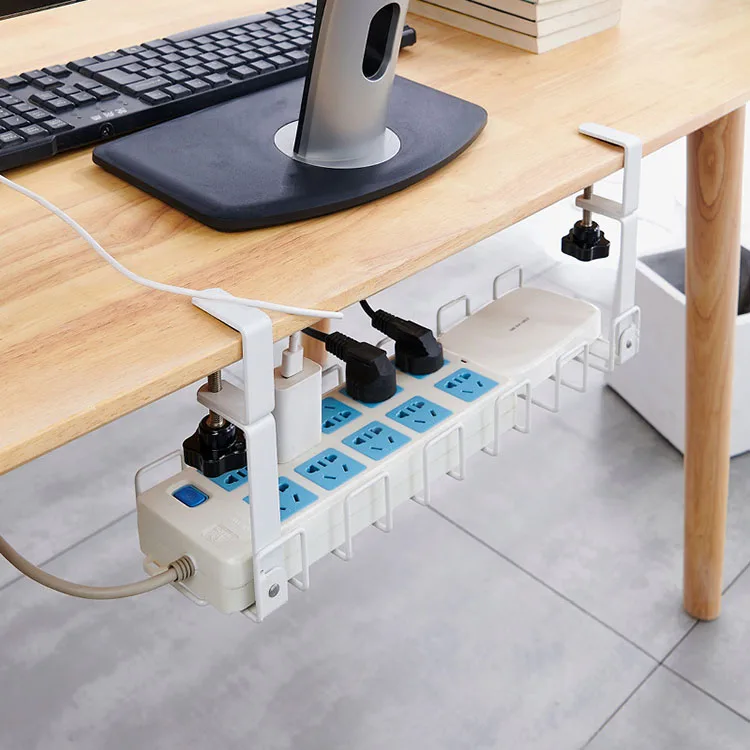 Store Hot Sale No-Punch Metal Shelf Electric Socket Cable Under Table Organizer