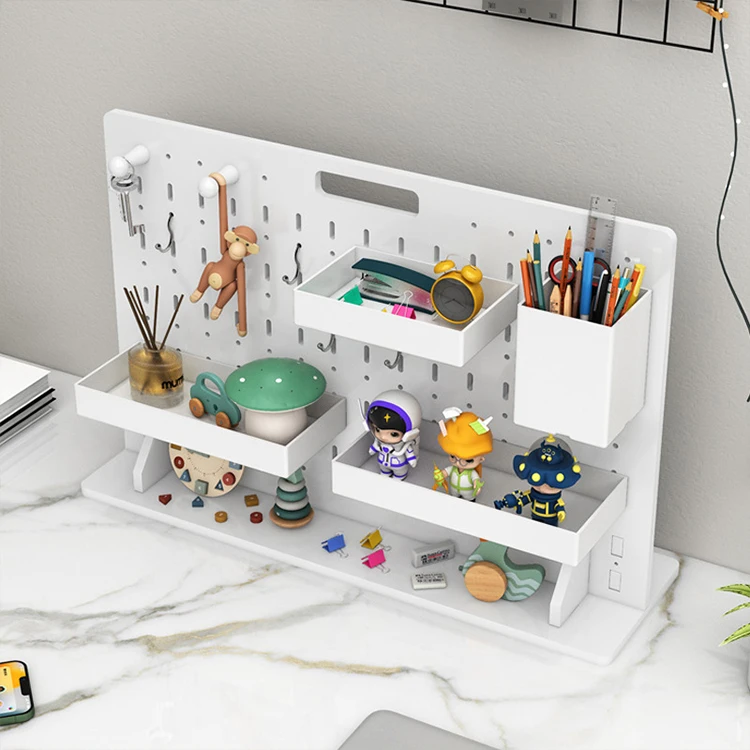 You are here: Home » Products » Pegboard » Store Hot Sale PVC Pegboard Organizer Set Desktop Pegboard Storage Racks