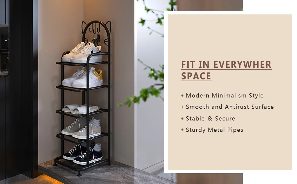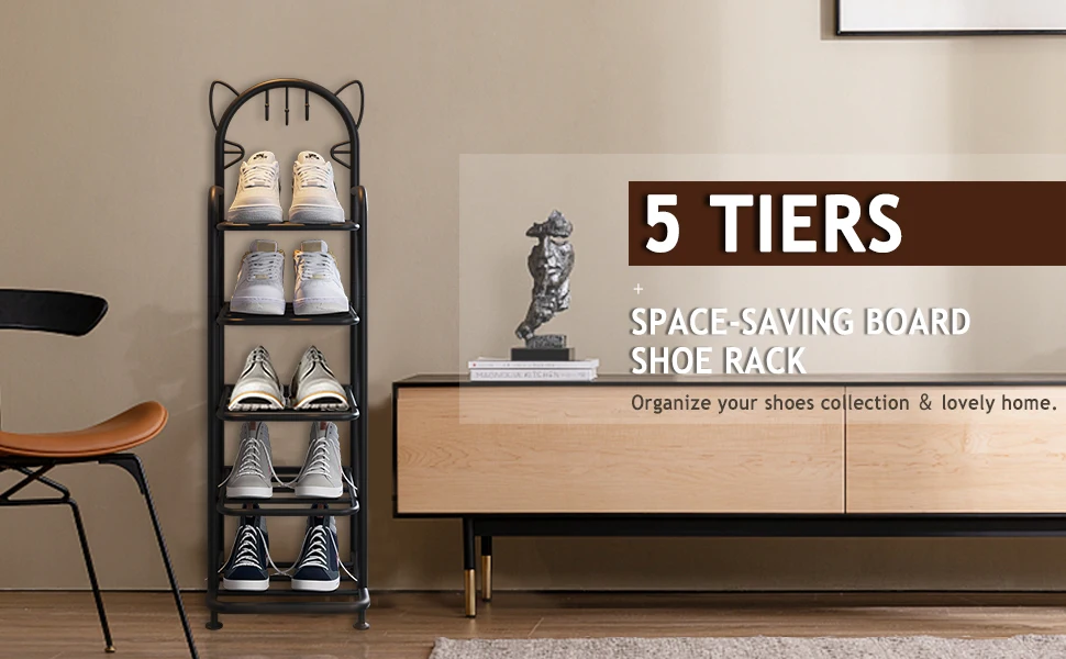 Sturdy Metal Free Standing Shoe Rack Saving Space Shoe Shelf 5 Tier Vertical Storage Organizer