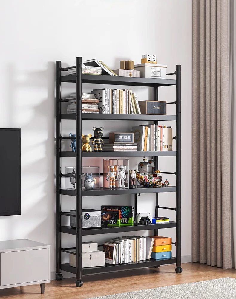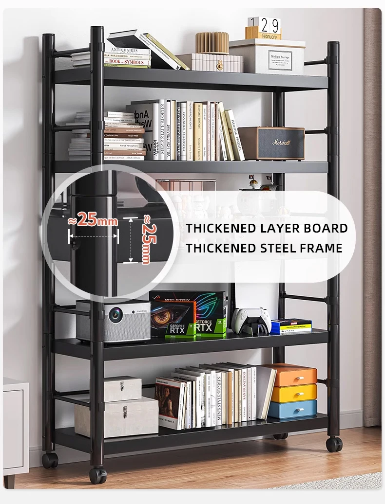 Thickened Steel Bookshelf Floor Stand With Wheels Students Special Book Organization