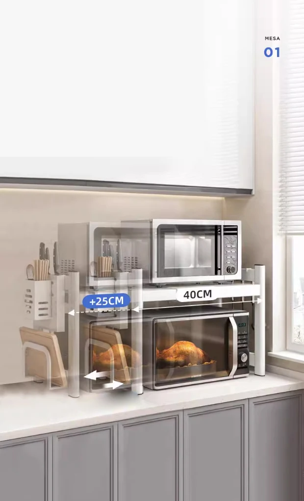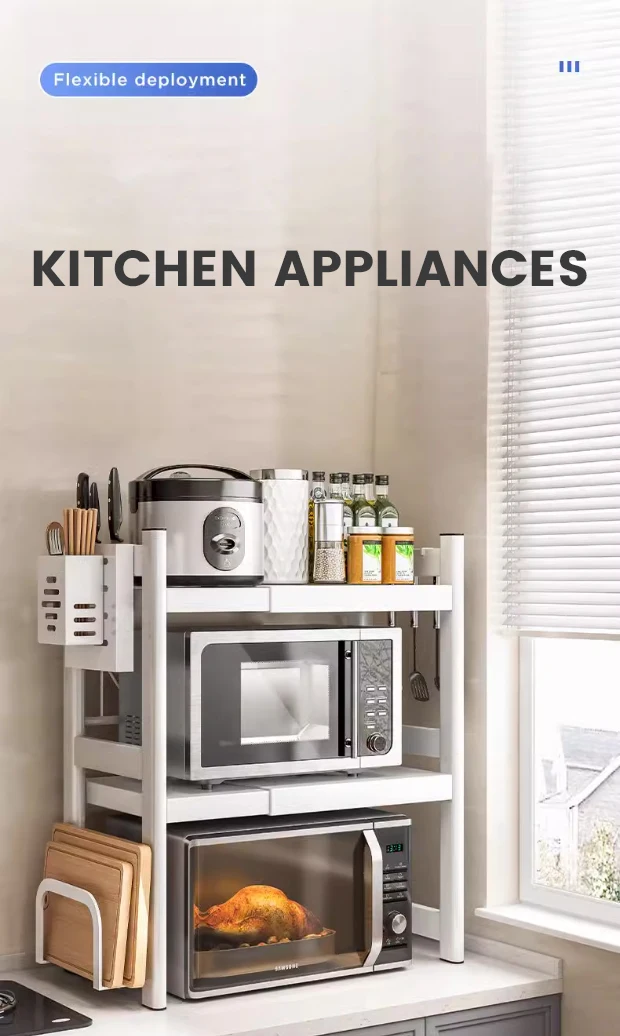 You are here: Home » Products » Kitchen Storage » Upgraded Reinforced Model Microwave Oven Storage Rack Double Tier Retractable Kitchen Organization