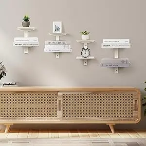 White Floating Bookshelf for Wall Mounted, 2 Tier Vertical Spine Book Tower