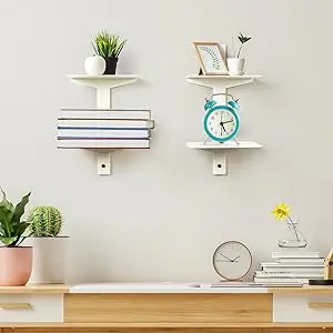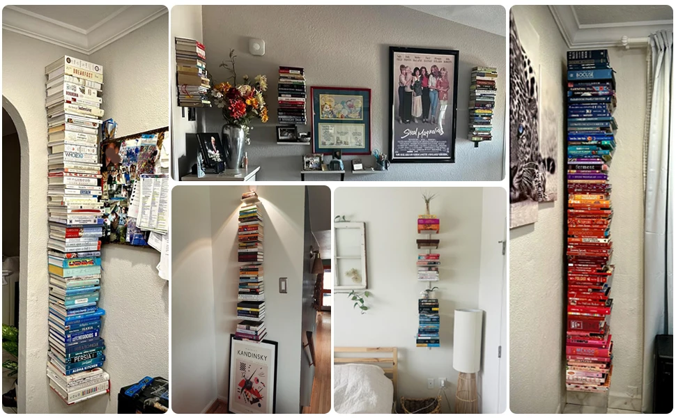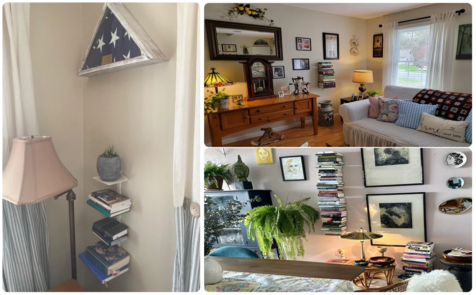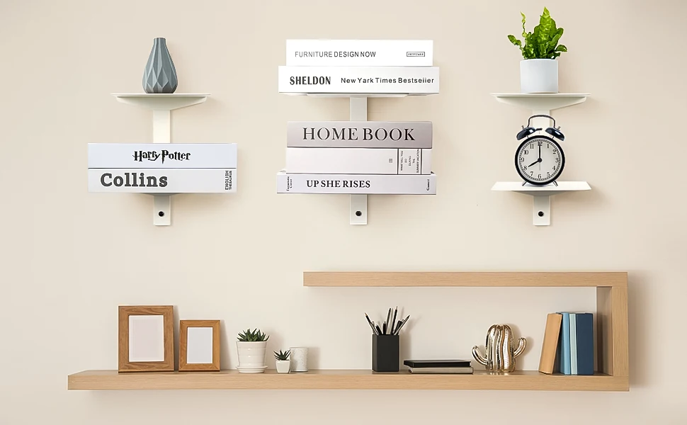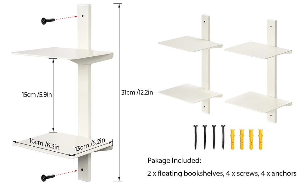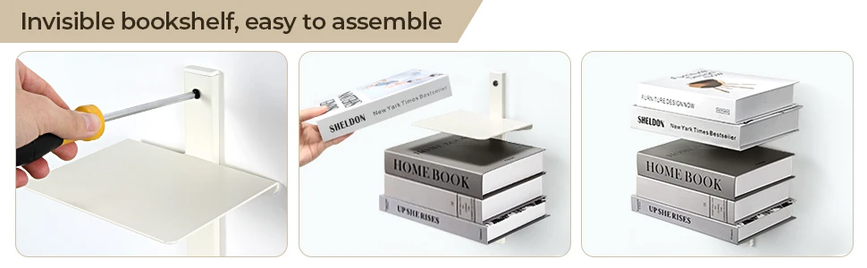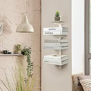 You are here: Home » Products » File Storage » White Floating Bookshelf for Wall Mounted, 2 Tier Vertical Spine Book Tower